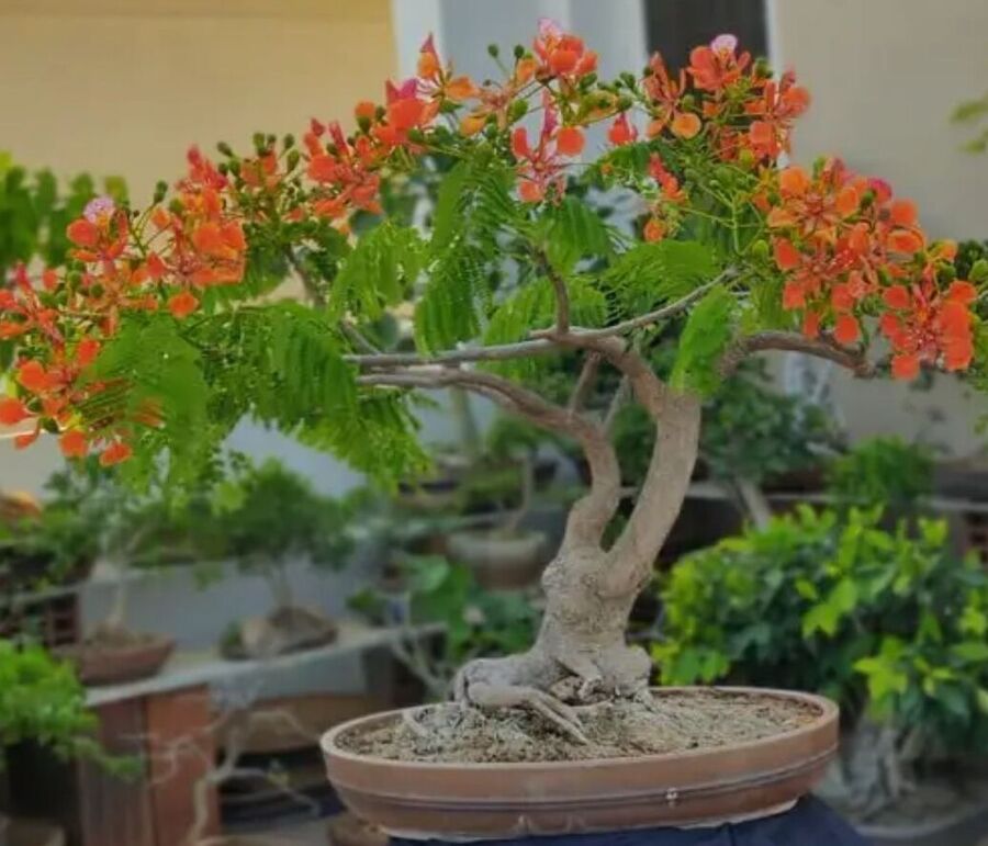 Flame tree bonsai is a popular variety of bonsai that originates from the tropical regions of Central America and the Caribbean. The flame tree, also known as Delonix regia, is a deciduous tree that produces beautiful, fiery red or orange flowers during the summer months. This tree is grown in tropical and subtropical areas because it looks very beautiful.